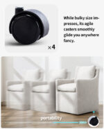 Home Chair Androla Upholstered Rolling Dining Chair – Swivel Accent Chair with Casters