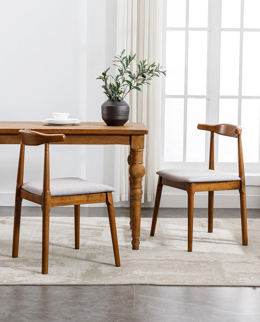 Androla Set of 2 Wooden Elbow Dining Chairs – Padded Seat Mid-Century Style