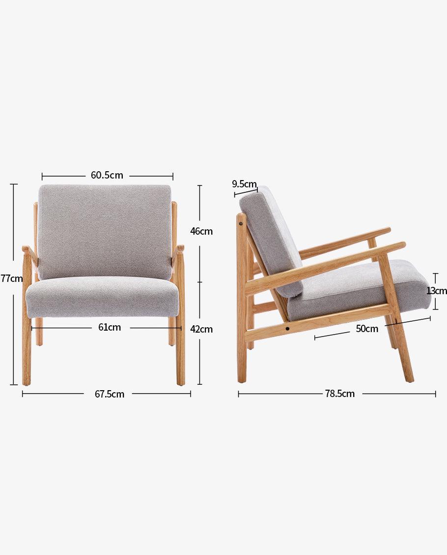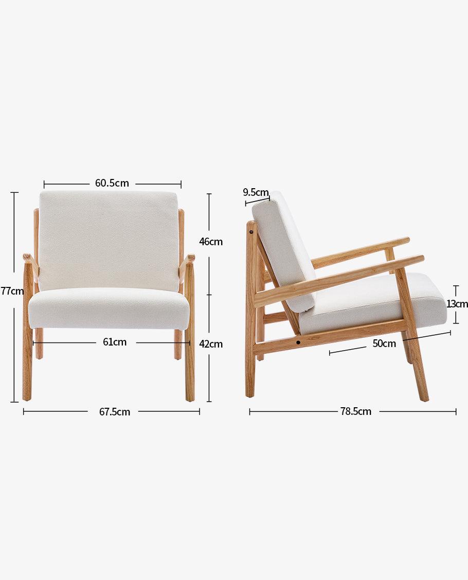 Debonair, understated yet comfy, our Juneau wood lounge armchair, gives you the feeling of vacation right at home. Resting gracefully on a clean-lined wooden frame, this lounge armchair showcases a seamless fusion of form, aesthetics and comfort. The classic Scandinavian design of our Juneau wooden accent chair is ingeniously rejuvenated with plush cushions and modern color palettes, ensuring a timeless appeal that transcends fleeting trends.