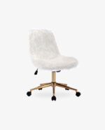 Androla Fluffy Faux Fur Desk Chair – Modern Swivel Office Chair with Wheels