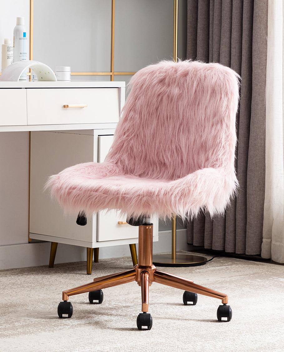 Upholstered in faux fur for layers of texture that give your space a hint of glam, our Kauai fluffy desk chair enlivens the verdant scenery and peaceful life that moves at a slower pace in Kauai island. Imagine the look of this cute fluffy task chair at your desk and the ultimate comfort as you effortlessly glide to your workstation.