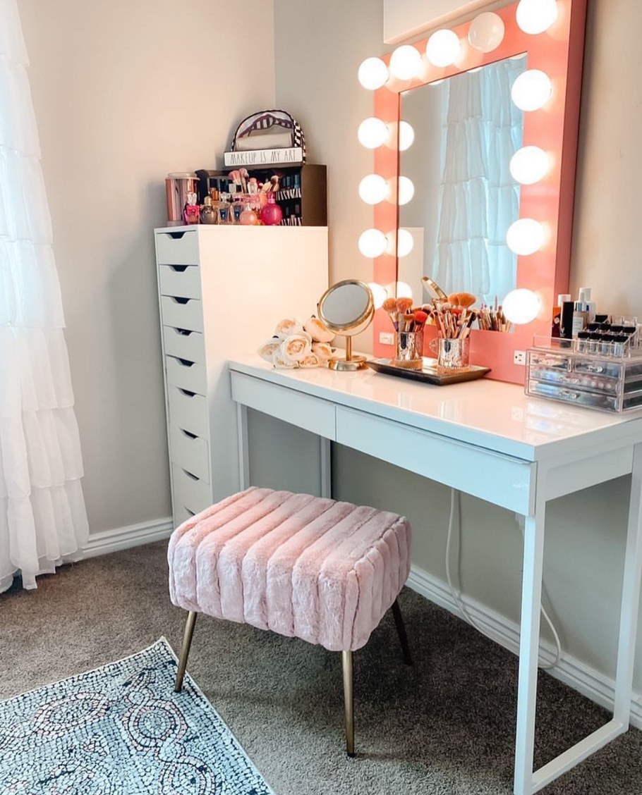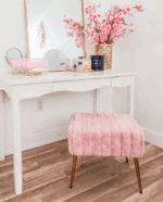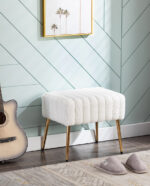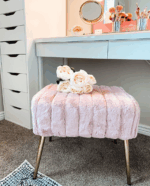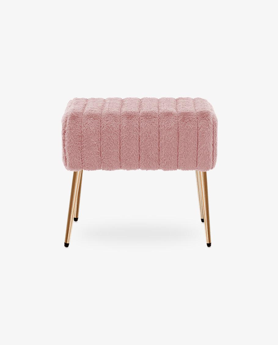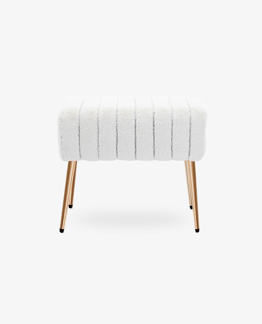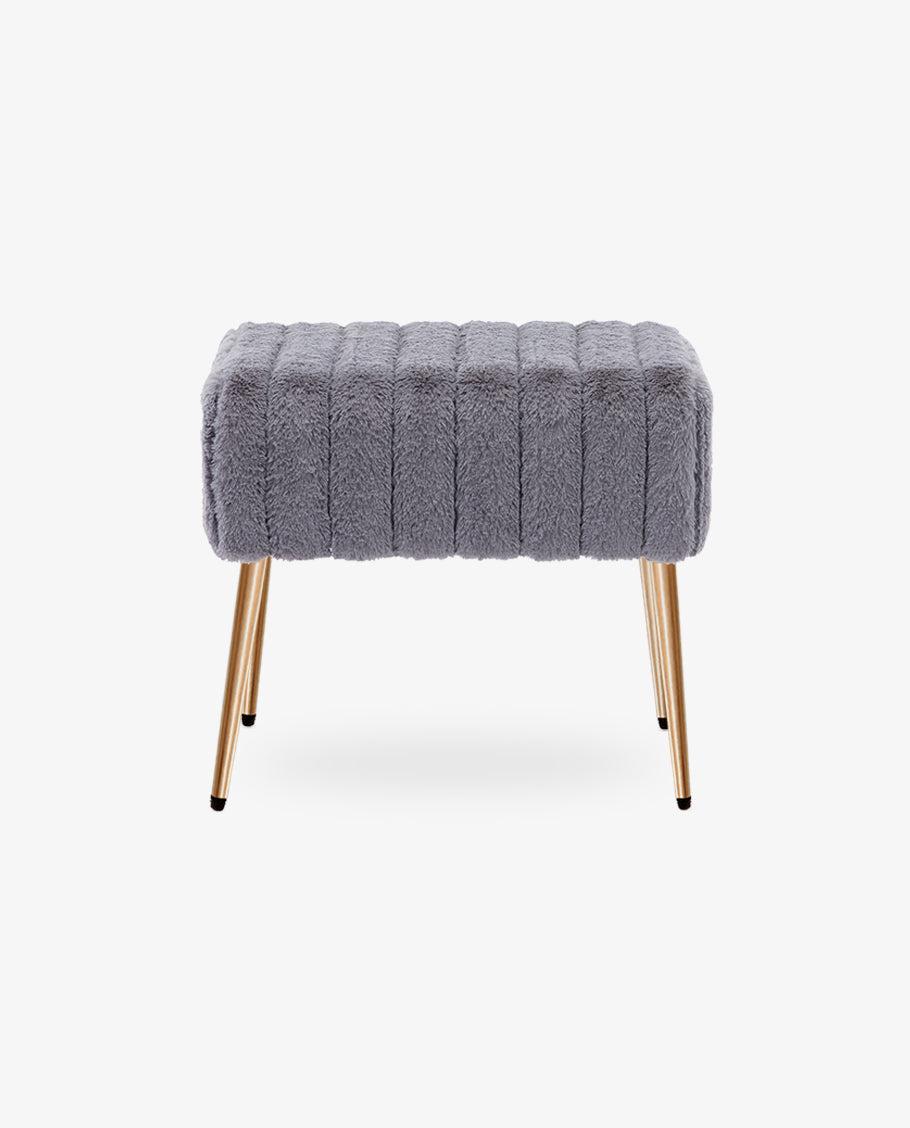 Still lack of a compact short bench under the vanity desk when it’s not in use? Then you might be the right place: it’s pretty pleasant to sit on the upholstered faux fur short bench for removing and applying the delicate makeup on your face in front of a dressing table. Faux fur encloses the high density foam to provide a soft but supportive seat, and the gold metal legs are sturdy and durable to withstand full weight capacity. Also, you can also put your feet up on the chair and descend into pure relaxation and comfort.